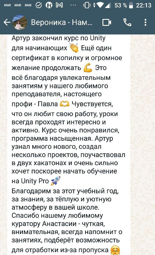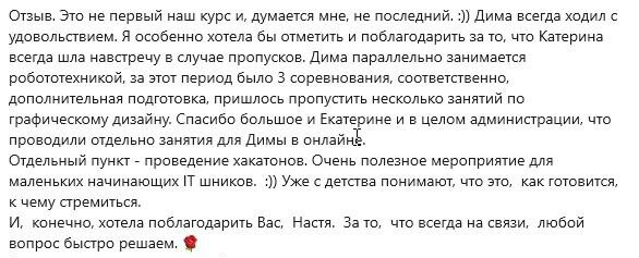 На хакатонах мы закрепляем все, что проходим на уроках. Это действительное лучшее практическое применение всех полученных навыков во время обучения. Также мы проводим обучающие стримы, где ученики получат новую информацию сверх курса.